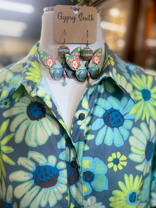 Tammy Top in Rust patch sleeves with Flannel wooden buttons