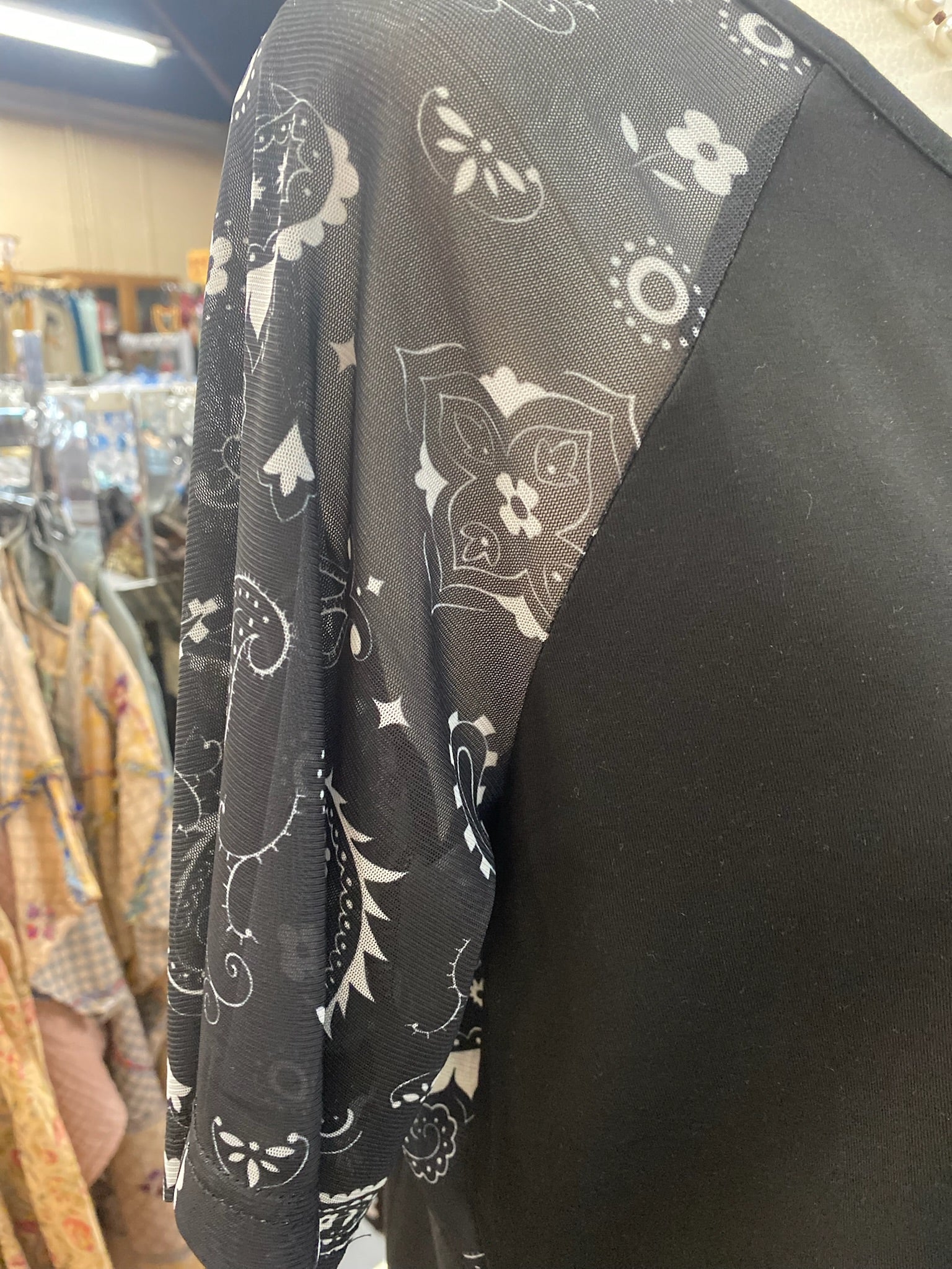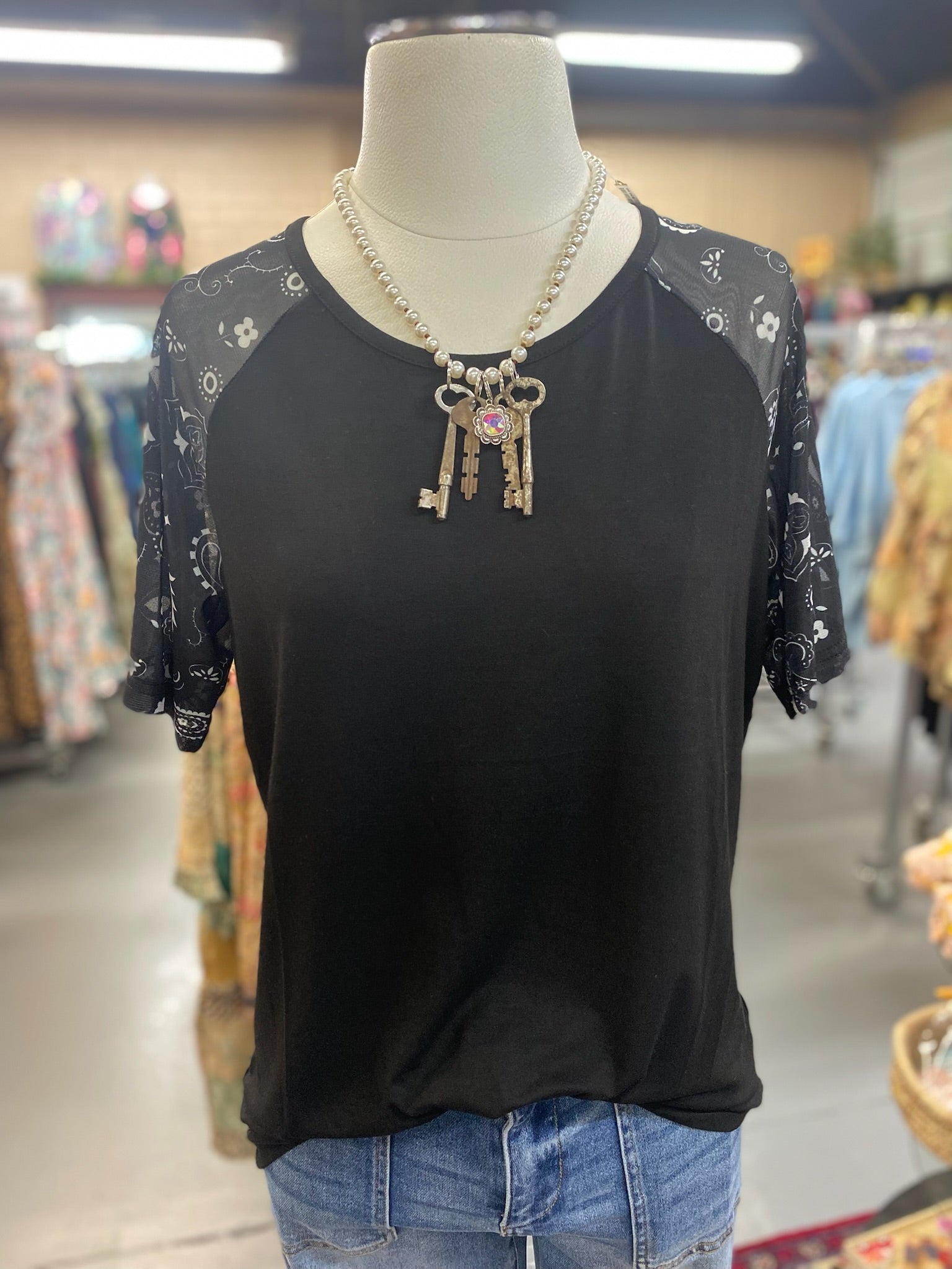 "The Lonely Black Road Top is a must-have for your wardrobe with its ultra-soft 94% Modale and 6% spandex material. The top features a unique mesh design on the sleeves and throughout, adding a touch of edginess to your look. Stay comfortable and stylish with this versatile piece."