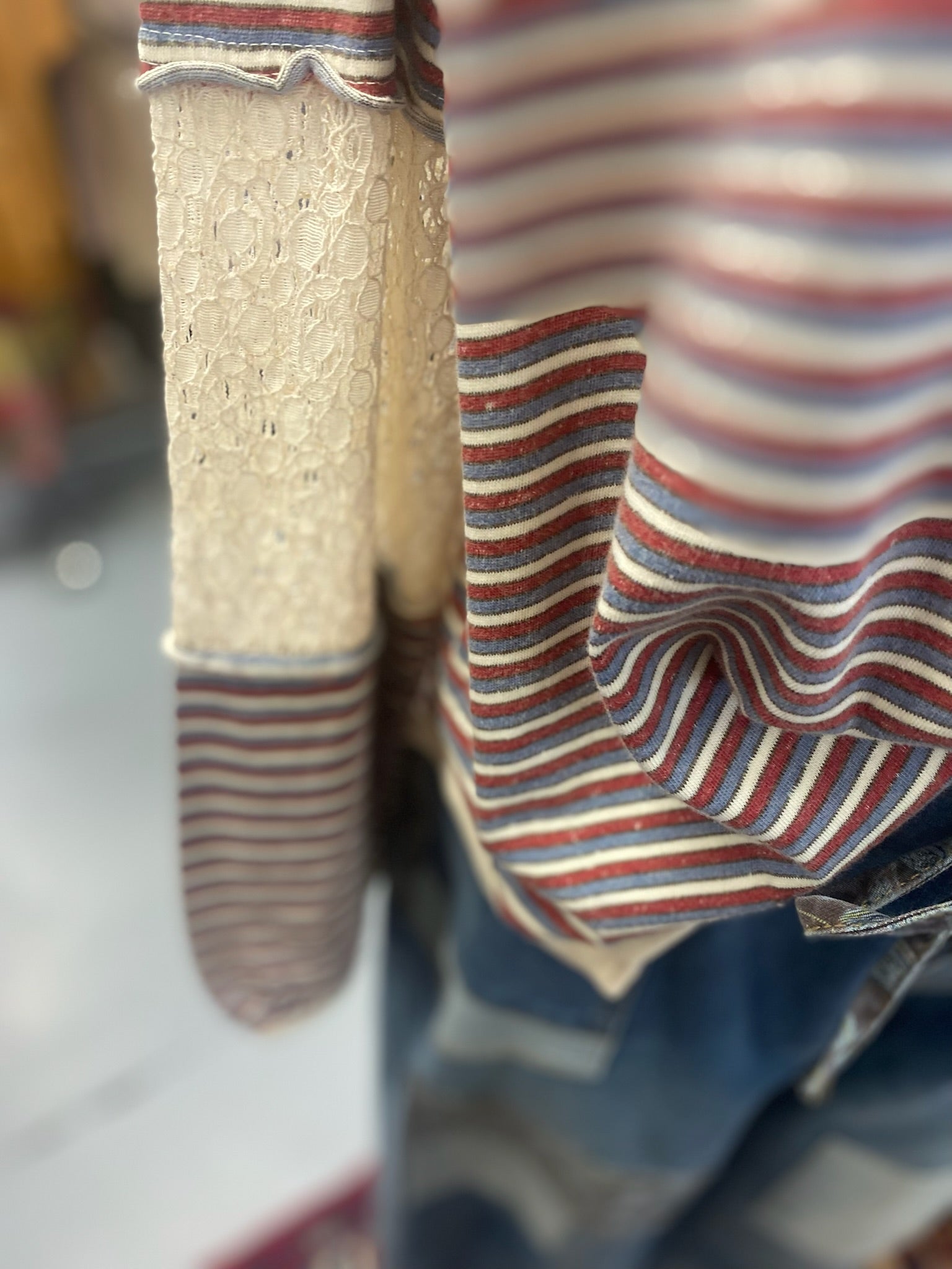 Stripe Top with side slits and Lace